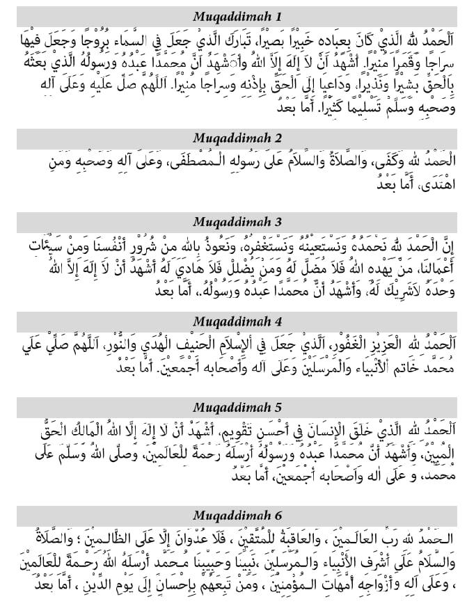 Berikut enam muqodimah yang diberikan oleh bina prestasi untuk bekal Muhadharah. (Alfain Jalaluddin Ramadlan)
